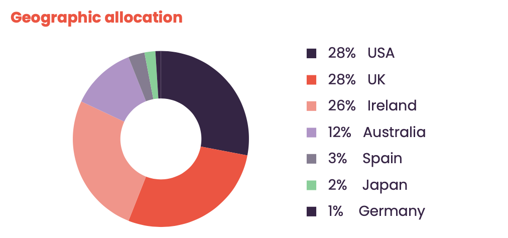 学生寮という満室率が高く、通常の不動産市況とは相関性が低く、需要が高い不動産にのみ投資をしています(ファンド・オブ・ファンズ)。過去一度も流動性(売買)がなくなったことがなく、安定した運用を続けています。現在では英国同様に米国への投資比率が高くなっています。