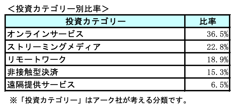 アーク社が考える「投資カテゴリー」別比率では、以下の内訳になっております。