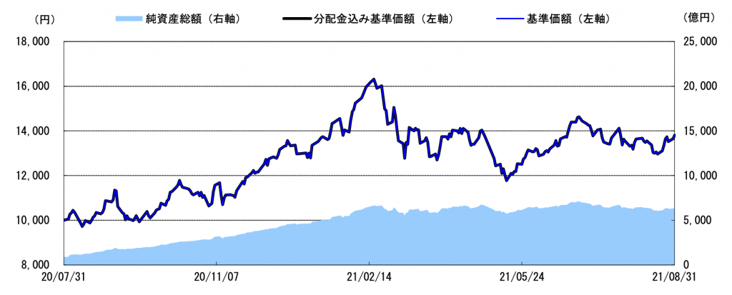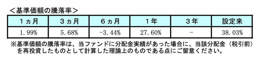 このファンドは2020年7月31日に設定されたばかりですので、まだ1年ちょっとの実績しかありません。