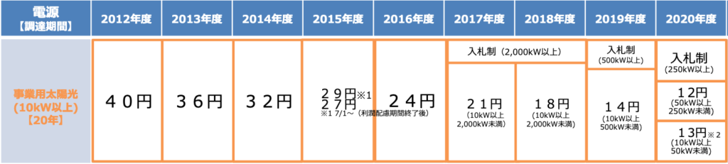 例えば、40円(税別)で売電を開始すれば、20年間はその金額で電力会社が買い取っくれるわけです。