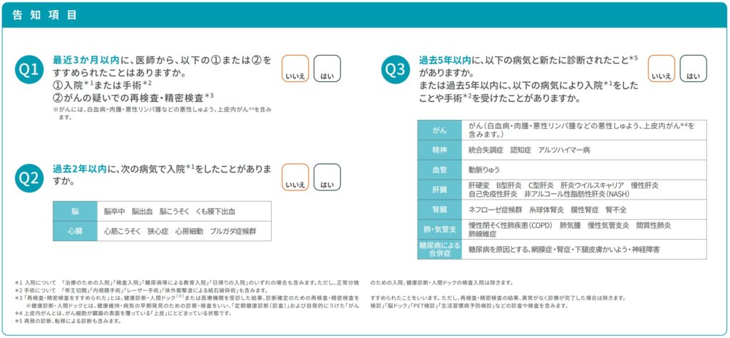 引受基準緩和型なので、保険料は通常の収入保障保険に比べてかなり割増されています。告知の質問事項は少し厳しめという印象です。