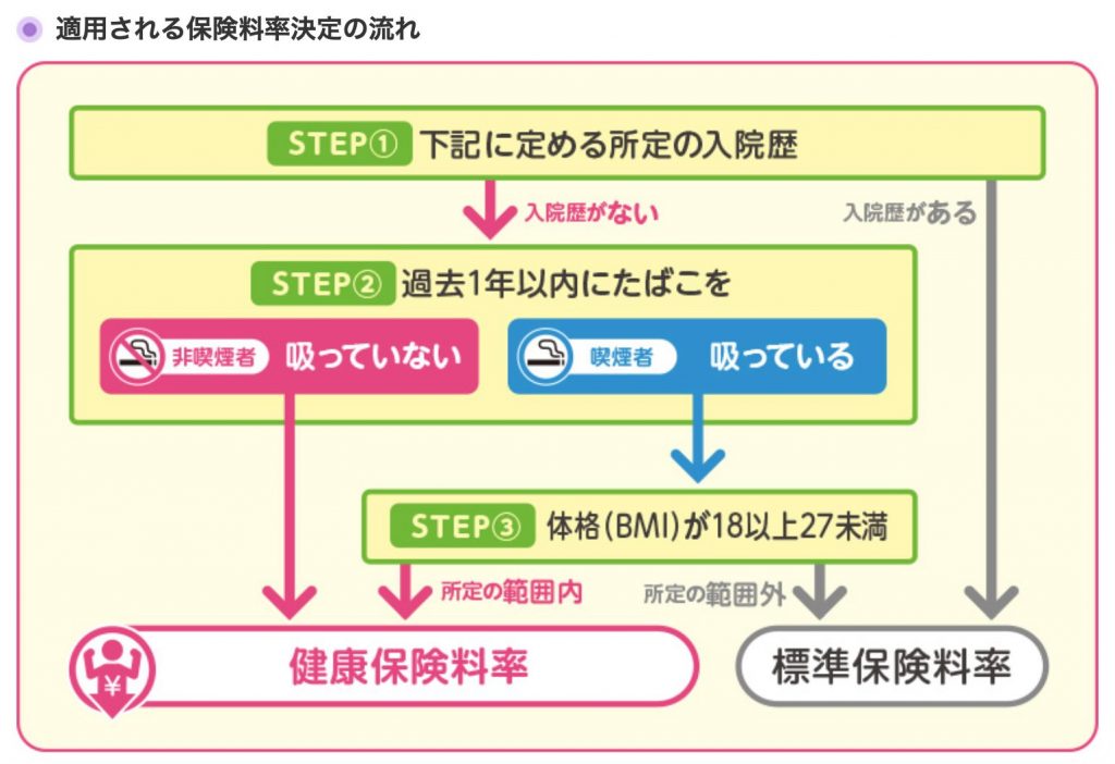 健康状況が所定の基準を満たす場合、健康保険料率が適用され基準を満たしていない方に比べて保険料が割安となります。
