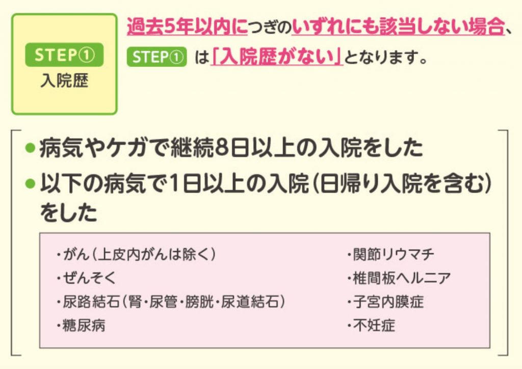 仮に、過去5年以内に入院をしていたとしても上記に該当しなければ健康保険料率が適用されます。