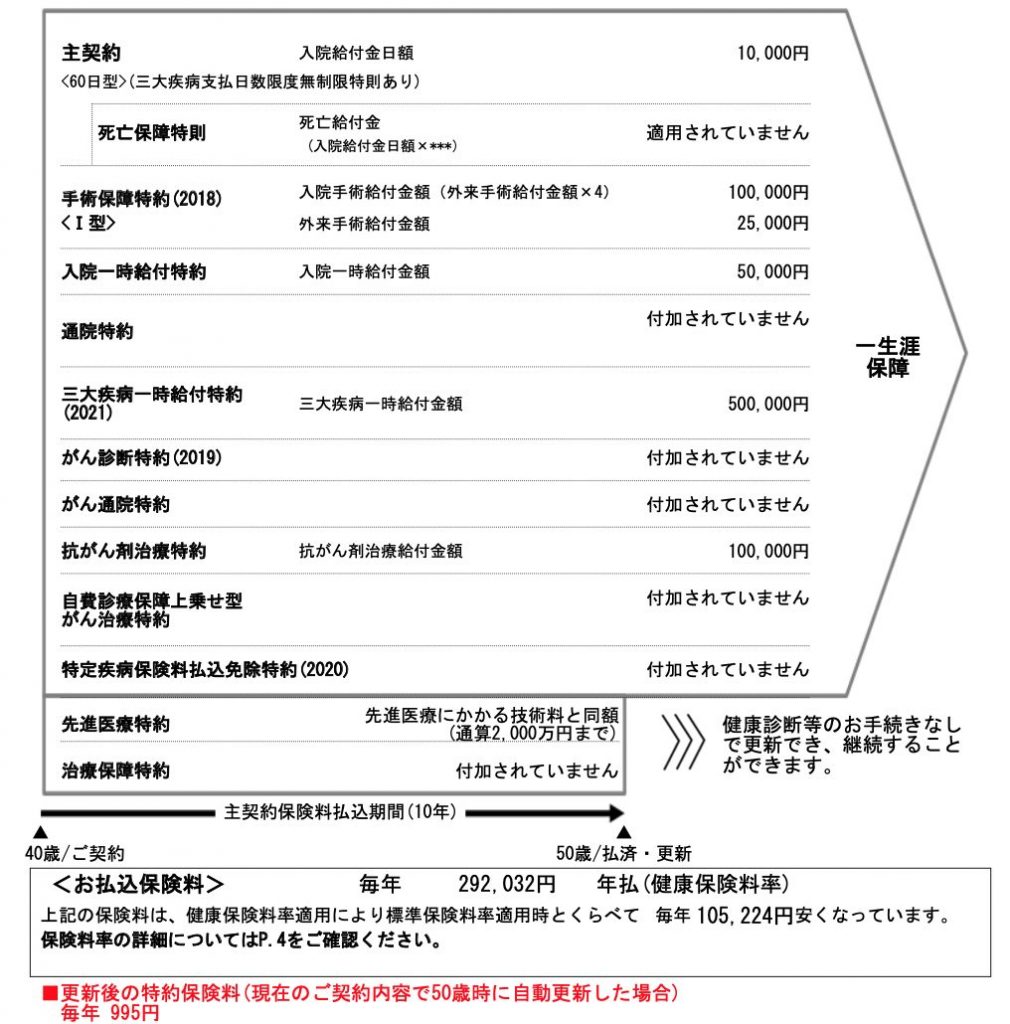 果たして、どれぐらい保険料が違うのか?ですが40歳男性(非喫煙)払込10年払いの設計書で見ますと