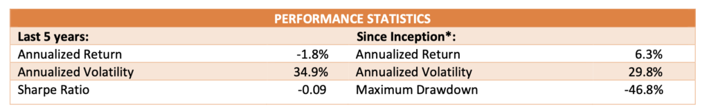 ロングオンリーのオフショアファンドの紹介です。ここでは大抵リターンが安定している、あるいはプラスが大きいファンドを数多く紹介しておりますが、今回はマイナスも大きく出しているファンドです。ロングオンリーということでヘッジファンドとは異なりますが、レバレッジをかけて、ハイリターンを狙ったファンドとなります。