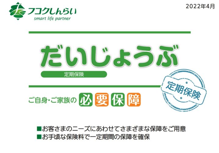 今回はフコクしんらい生命の定期保険だいじょうぶを解説していきます。