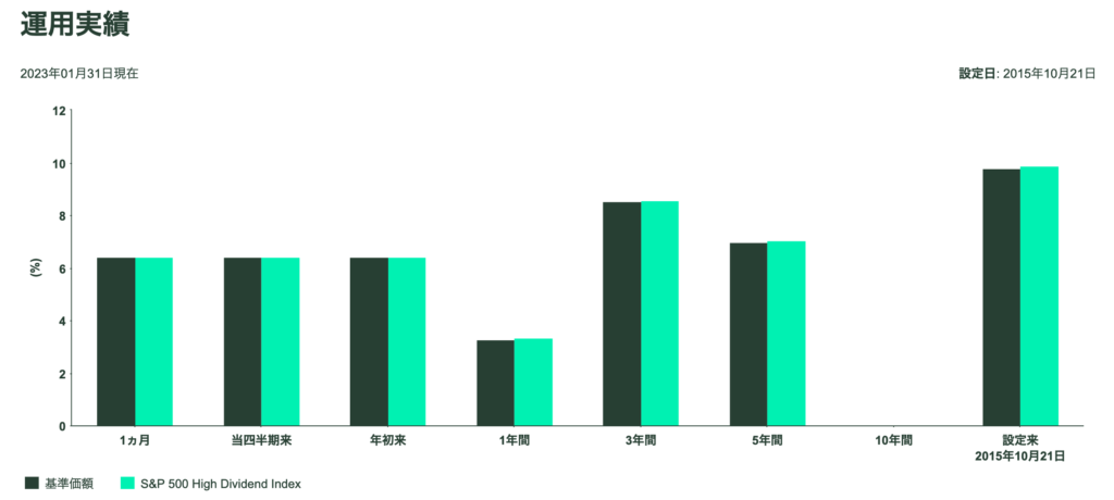 S&P500高配当指数(S&P 500 High Dividend Index)をベンチマークとし、S&P500高配当指数と同等の投資成果を追求することを目指します。