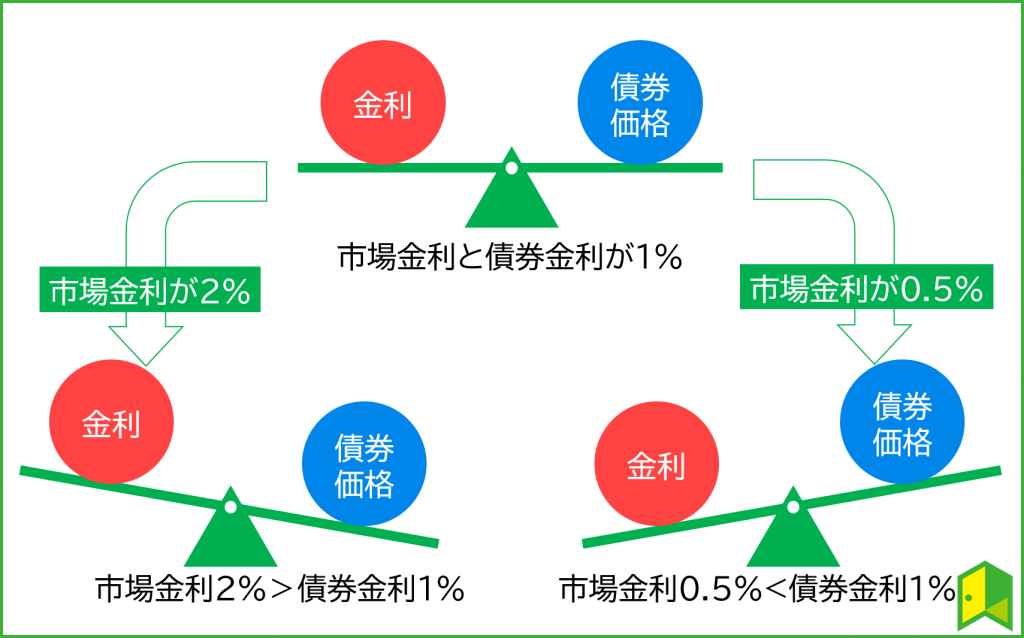 最後におさらいしておきたいのが市場金利と債券単価の関係です。