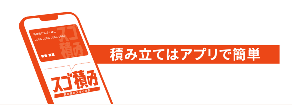 高島屋はこの買物積立サービスを高島屋のスゴイ積立【スゴ積み】としてアプリに搭載したのですが、住信SBIネット銀行にタカシマヤ支店の口座として開設をして、高島屋での買物に利用する「買物残高」としてチャージされます。