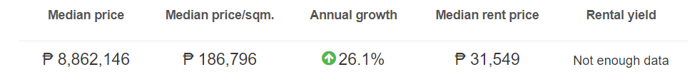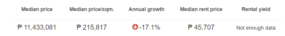 次に気になるのが、家賃収入(インカムゲイン)です。日本の業者さんの記事を読んだりすると、グロスで、リターンが約7%取れますといったような話もありますが、データが古いと思います。なので独自に調べてみました。エリアでデータがバラバラになりますから、一番わかり易いマカティエリアでチェックしましょう。