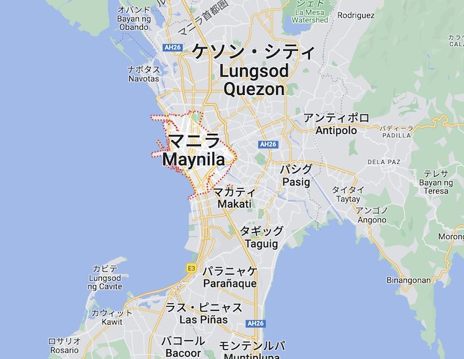 マラテエリア(地図上ではマニラ市の海外沿いのエリアとなる)