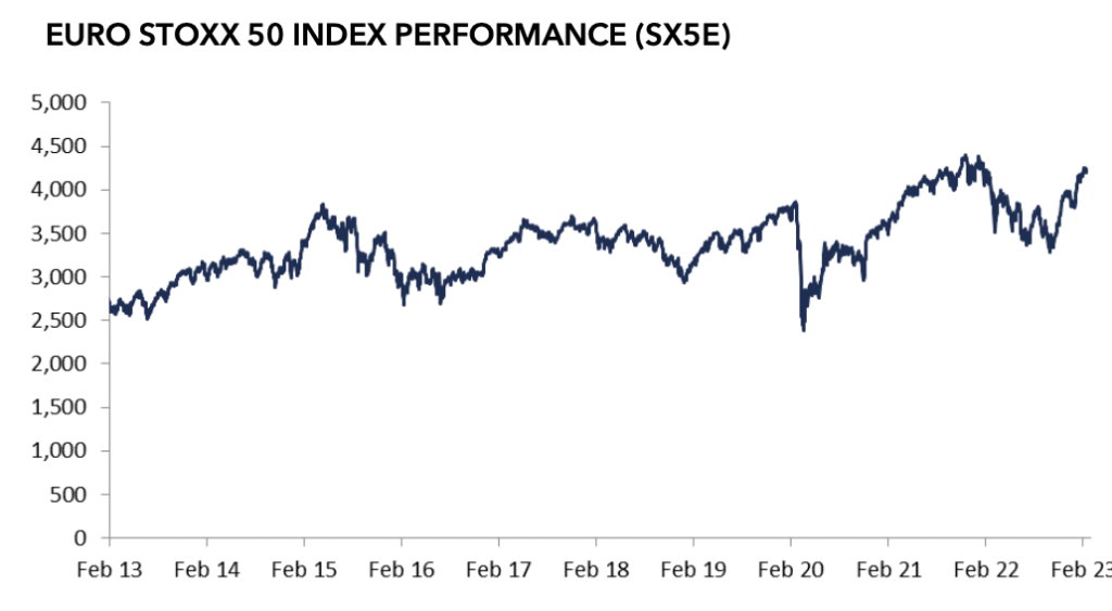 運用の対象となるのは、3つのメジャーな株式インデックス。S&P500、Nikkei225、Eurostoxx50となります。これら3つが算定の基準となっています。3つのインデックス全ての運用開始時の株価の基準値を100としてそれ以上になるかどうかが、このファンド運用のポイントになります。下はそれぞれのインデックスの過去のグラフを表したものです。ここ10年はいずれも上昇傾向にありますね。
