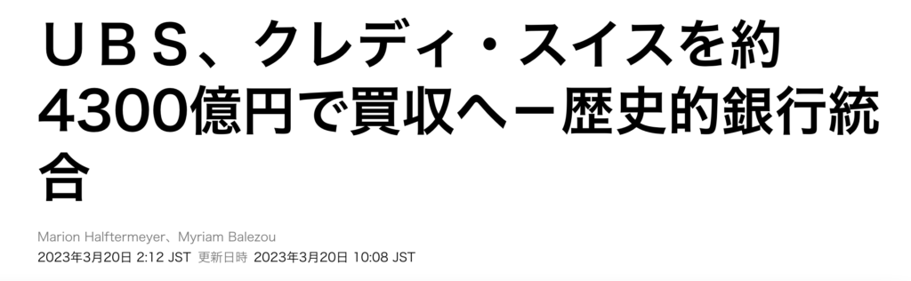 19日には経営不安が再燃していたスイス金融大手のクレディ・スイスを、同じスイスのUBSが買収することが決まりました。