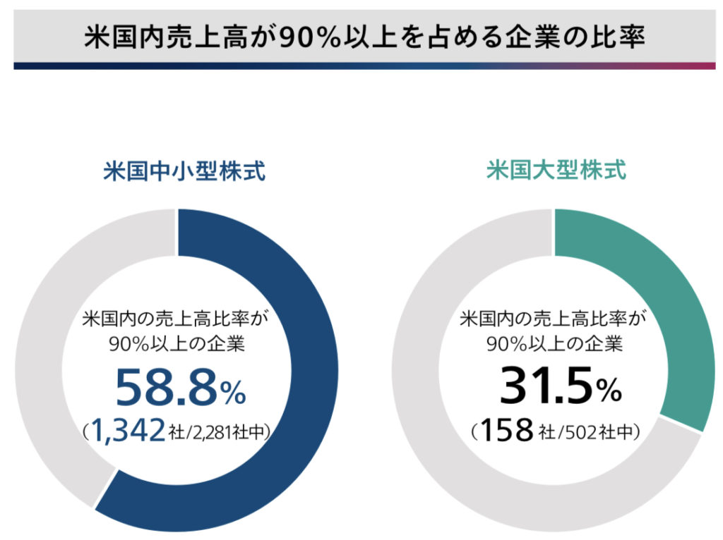 米小型株はまだ未熟期ということもあり、まずは米国内の売上比率が高く、国内で売れる物、サービス、仕組みができると、それを世界展開していくことで大型株へとなっていきます。