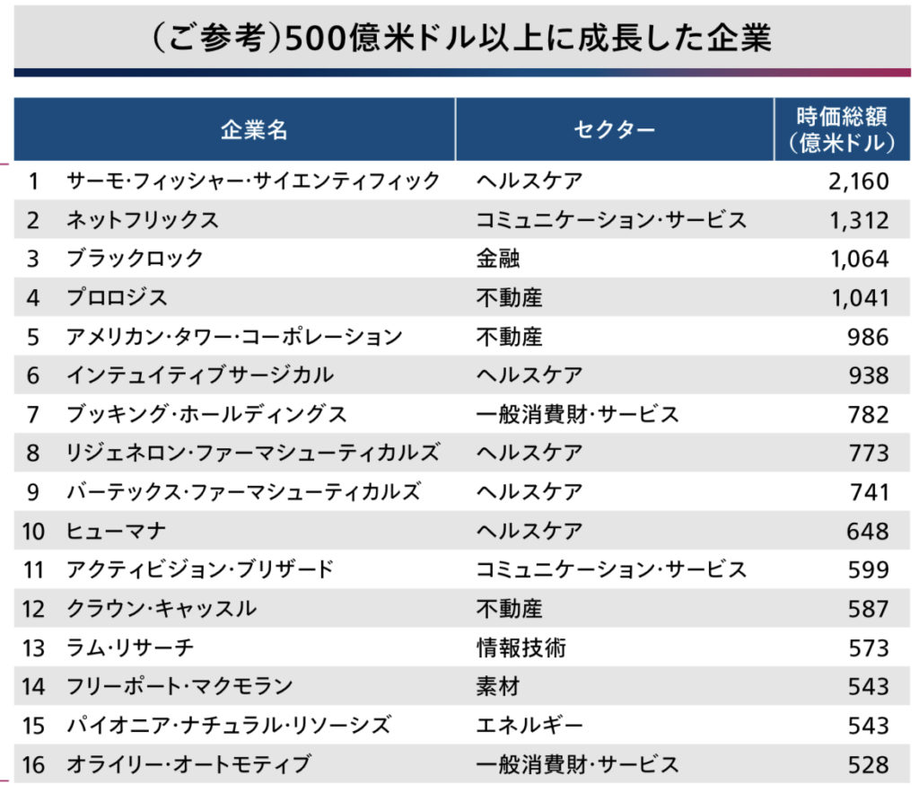 これまで大成功(時価総額500億ドル=約7兆円以上)したケースがこちら。私でも知らない銘柄がたくさんありますが、Netflixもそのうちの一つなんですね。