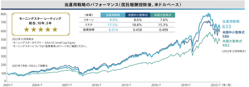 そうですね、大型株、S&Pと比べてハイリスク=ハイリターンです。また中小型株をリサーチするアナリストが少ないこともあり、中小型株ファンドも貴重です。