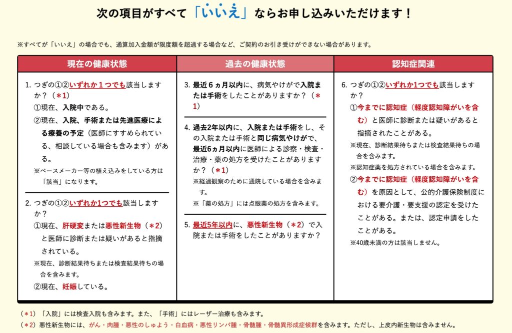 他社では断られましたが、この商品の告知内容を見ると全て「いいえ」でした。