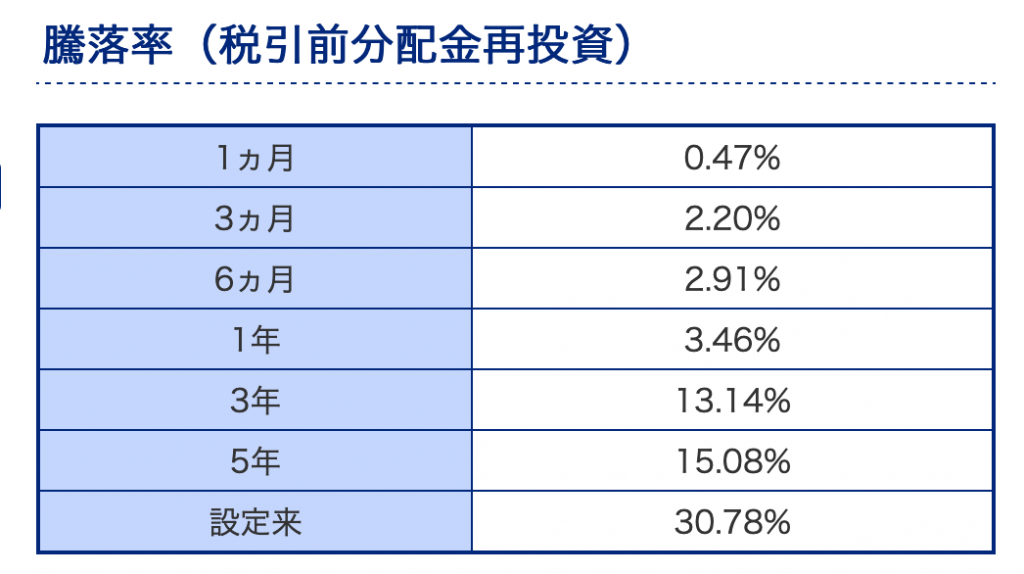 2012/10/25の設定来リターンは30.78%年率リターンは3.2%ですね。