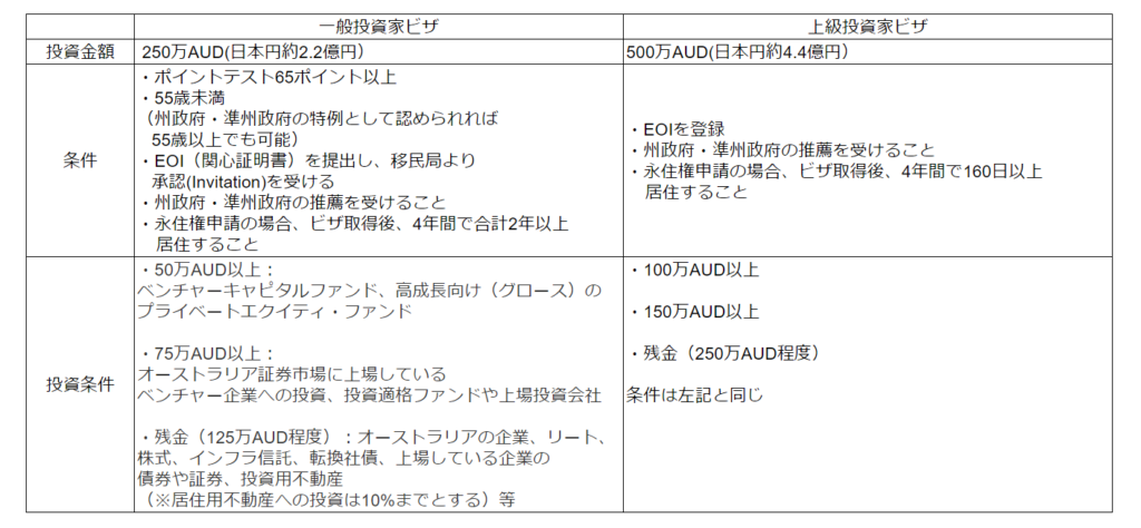 - 投資家ビザを除くと移住用ビザのハードルは高い