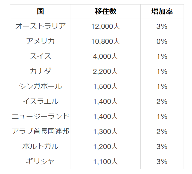 日本人の移住先とかなり違っていますね。お金があると考え方が違うのかなあ?