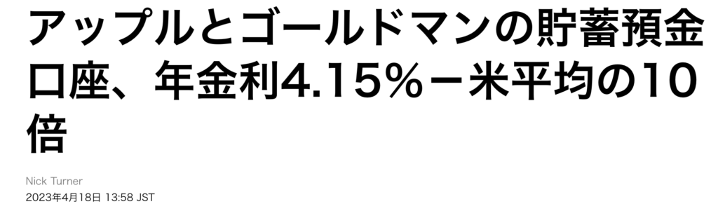 そういえば、アップルが金利4.15%での普通預金サービスを開始したと発表しましたね。