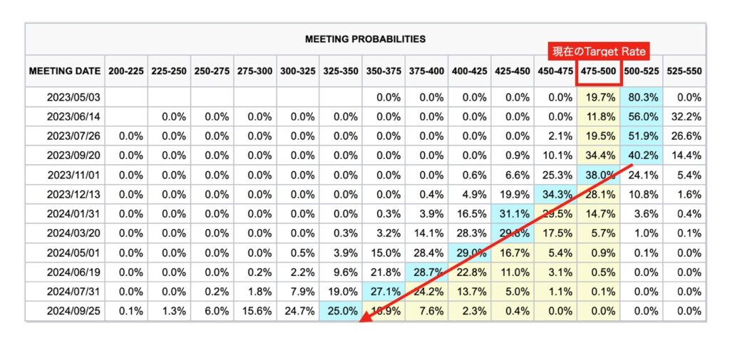 先般の記事、リセッション(景気後退)を見越して投資対象を変えるでは、FRB(連邦準備理事会)の追加利上げが不要になる可能性について取り上げましたが、5月FOMCで0.25%引き上げとなるかも知れませんが、その後は据え置きと利下げが続くとの見方が優勢です。