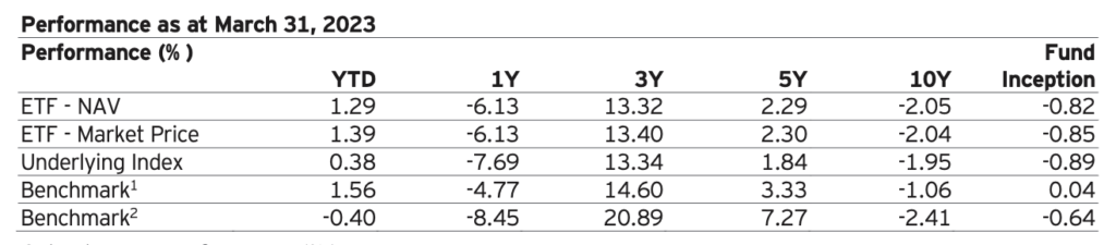 2023年3月末時点のFactsheetで確認すると、設定来の年率平均リターンは-0.82%となってますね。