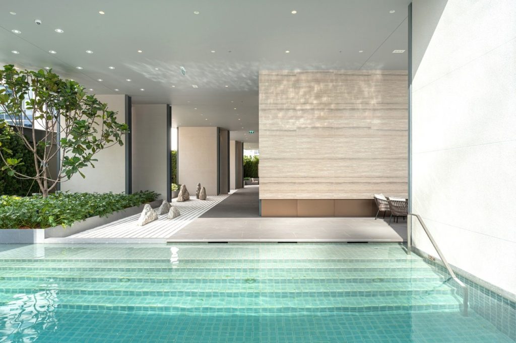 現在1THB=約4円ですので、2ベッドルームで億を超える金額になります。そしてさらに贅沢なのが共有部分。プール・ジムは当然なのですが、それ以外に日本のお寺を意識した庭、そしてフリー共有スペースや、何と日本人を意識した温泉まであります。