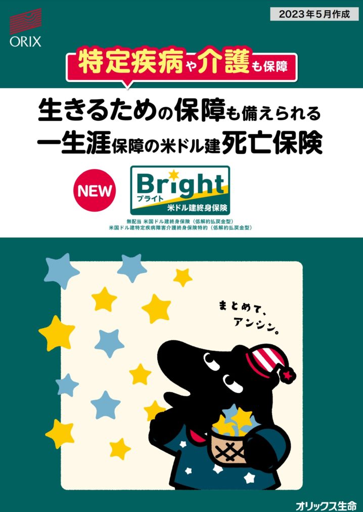 今回はオリックス生命の「米ドル建終身保険 Bright」を解説します。これは同社の「米ドル建終身保険Candle Wide」の保険料率の改定が行われた際にペットネームが変わりました。米ドル建で貯蓄(老後資金など)と保障(死亡、高度障害、三大疾病、障害、介護)と幅広くカバーできるので提案されている方が多いと思います。