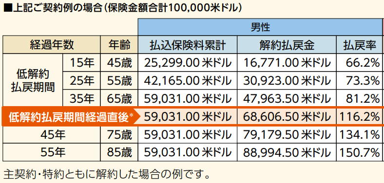 無配当 米国ドル建終身保険(低解約返戻金型)