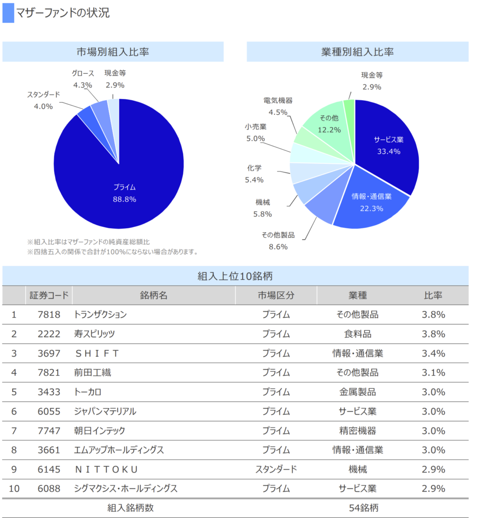 中小型株式とは言うものの、ほとんどプライム市場から投資先を選定していますね。
