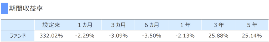 直近1年で-2.13%、3年で+25.88%の騰落率になります。