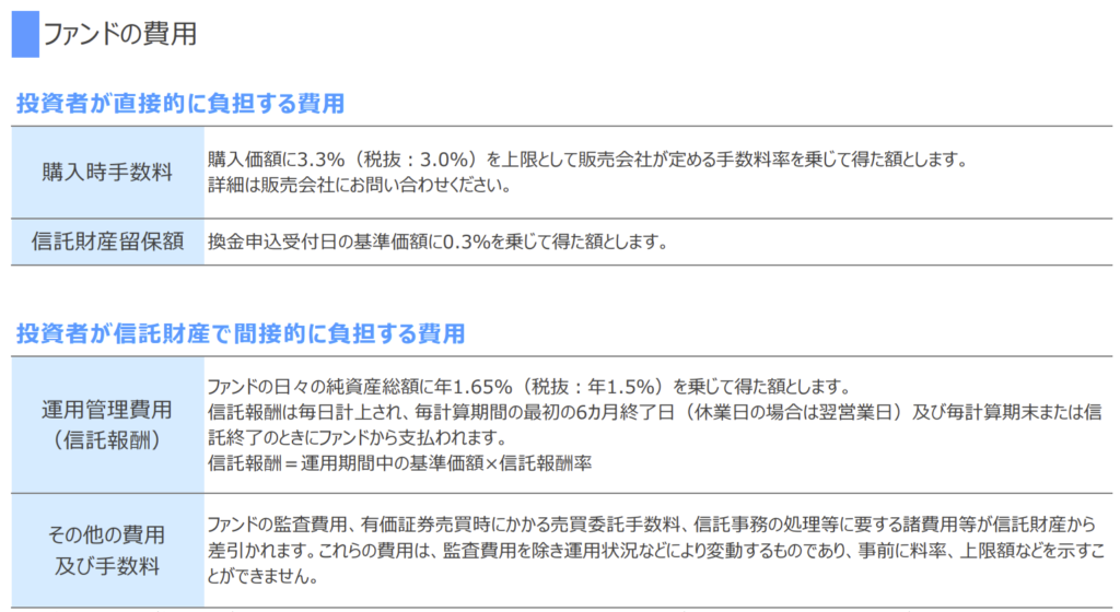 購入時手数料が3.3%、毎年の管理費用は年1.65%程度がかかります。