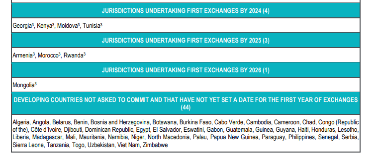 簡単な例です。香港に銀行口座を開設し、保有しているとしましょう。しかし香港はCRSに加盟していますから、その口座情報は日本の税務当局にも情報共有されることになるのです。一方参加していない国ですがOECDのHPから見ることができます。参加が決まっていない国と地域は44あるようです。