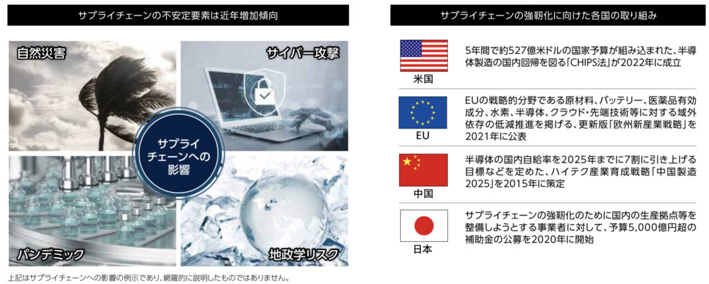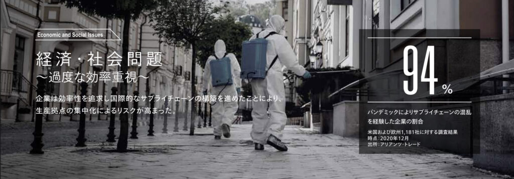 3年という長い期間のパンデミックにより、大きな問題が露呈しました。物流、サプライチェーンです。キッカケはパンデミックではありましたが、常に自然災害、戦争&デモなどの地政学的リスク、サイバー攻撃によるリスクが伴います。