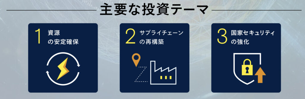 • 投資テーマ1:資源の安定確保