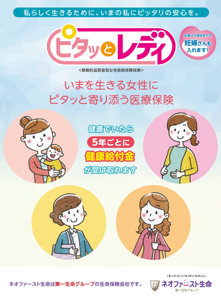 今回はネオファースト生命の女性疾病保障保険「ピタッとレディ」を解説していきます。