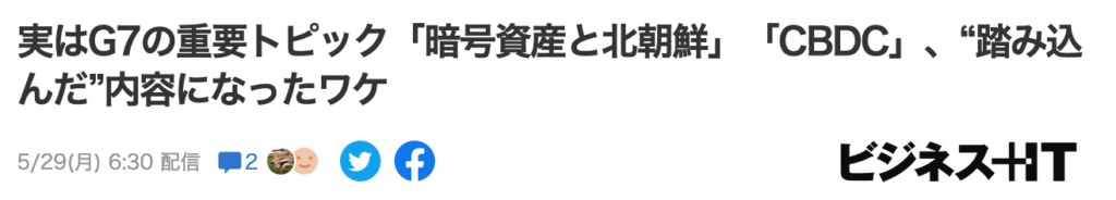 ちなみに、先般のG7サミット7カ国財務大臣・中央銀行総裁会議の重要トピックのひとつは「CBDCハンドブック」の作業加速だったようですが、今年開催されるIMF年次総会までに公表する予定とのことですから、かなり急いでいるようですね。