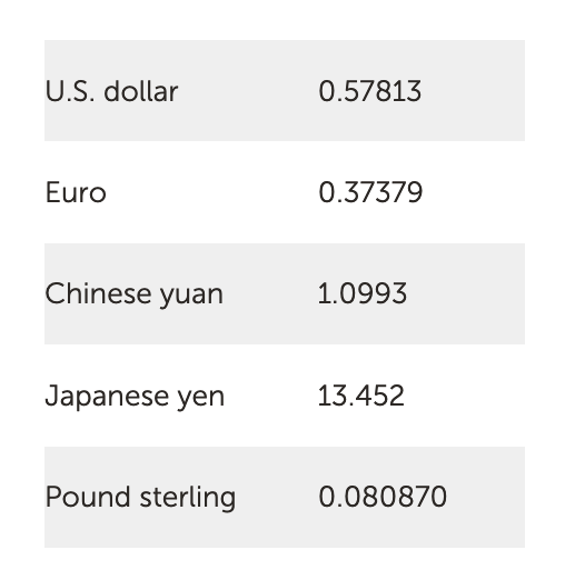なお、2027年7月31日までの新たな評価期間中のSDRの価値を決定する5通貨の金は以下のとおりです。