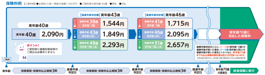 やはり保険料が読めないのがネックですね。ただ保障内容は良いので「30代〜40代の若い時だけ加入しておく」と割り切って加入するならアリかもしれない。