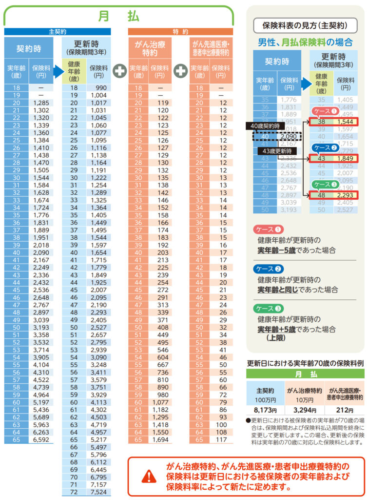 8大生活習慣病の受取条件が入院だけとシンプルで他社と比較しても緩いので保障内容は良いです。ただ保険料は更新するたびに高くなるので、ある程度の年齢で見切りをつける必要があると思います。その間に資産形成をして自分で支払えるようにしましょう。