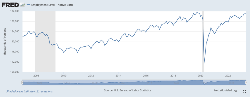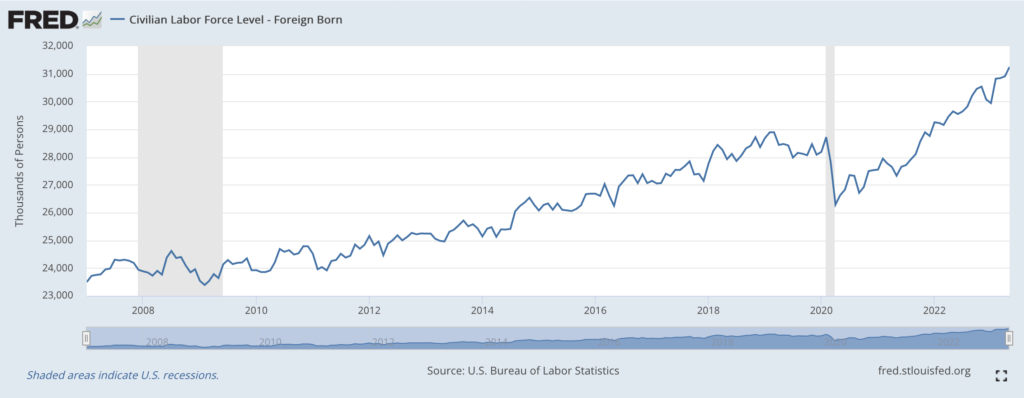 5月雇用統計で非農業部門雇用者数は33.9万人増と労働市場は堅調と報道されておりますが、これはその多くは外国人労働者が増えているからですね。