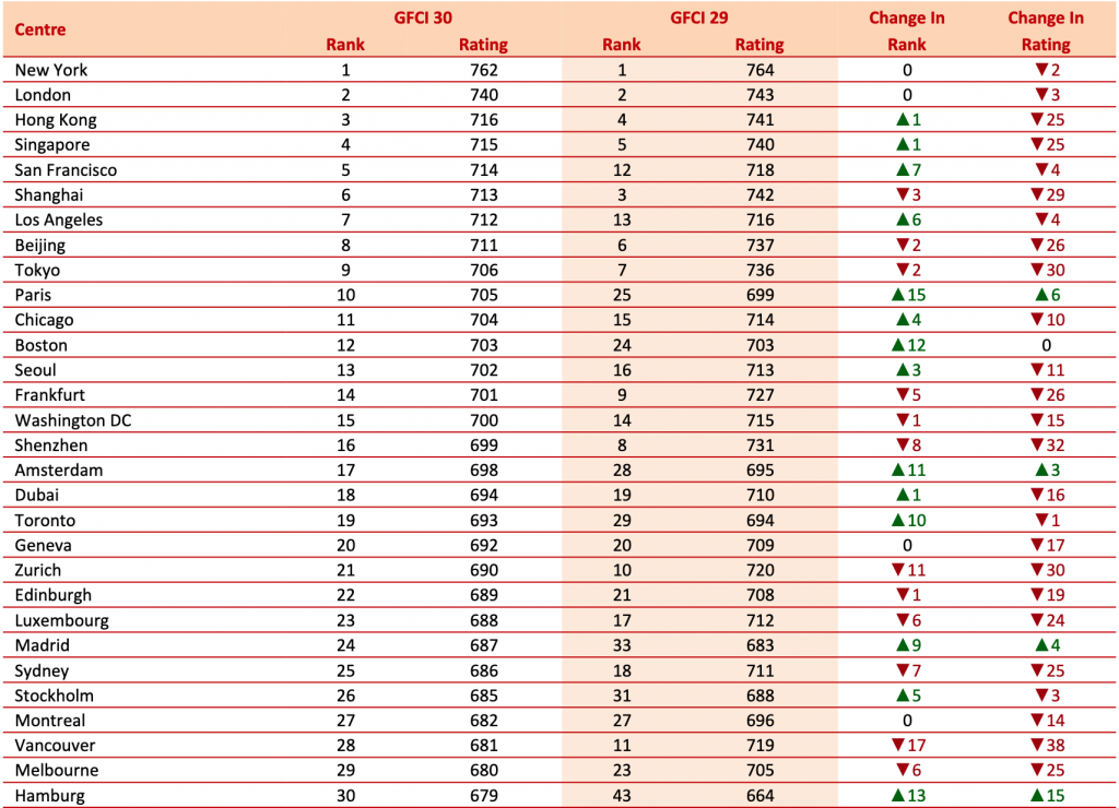 先日(9月24日)に発表した「Global Financial Centres Index (GFCI) 30 Report」において、香港は世界第3位となり、今年3月に発表された同指標から1つ順位を上げております。