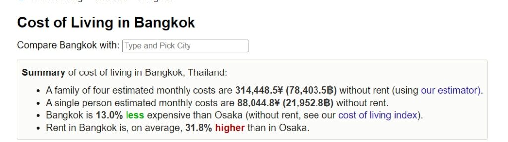 今米国はインフレがすごいので、おそらくこれより生活コストは掛かると考えられます。最後にタイです。