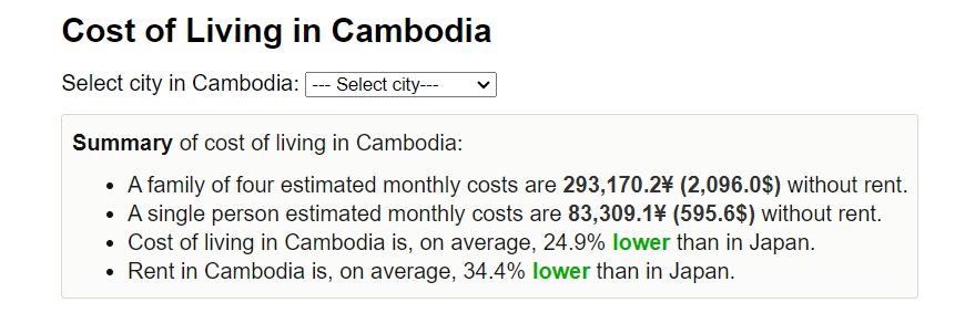 個人的には家賃除いた生活コストはもう少しかかるのでは?という感じです。