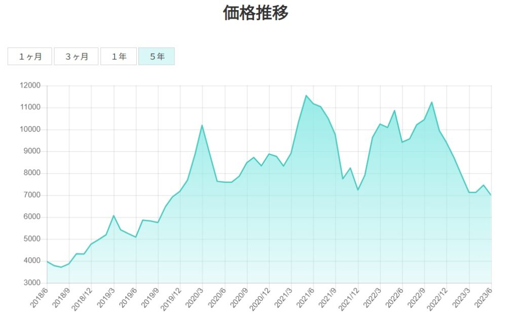 昨年高値を付けてから価格が急落しています。このように価格の相場を知ることが難しいのが特徴です。今は安値ですから買い時なのかもしれませんが、将来どうなるのかは不透明ですね。