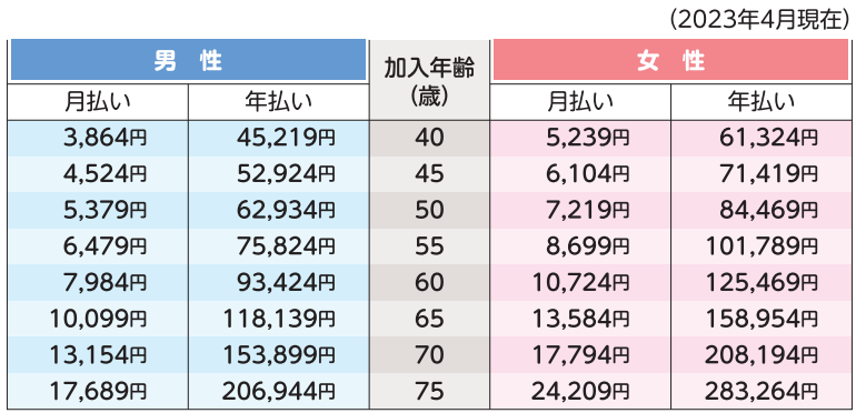 払込期間:50歳〜80歳満了(5歳刻み)、99歳満了