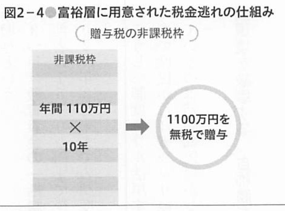 富裕層に用意された税金逃れ(節税)の方法1は「贈与税の非課税枠」。