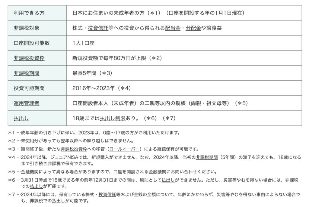 「ジュニアNISA」は2023年末で廃止されるのではないのでしょうか。