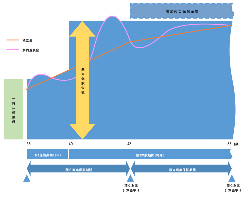 • 5年後から死亡保障が立ち上がる一時払終身保険